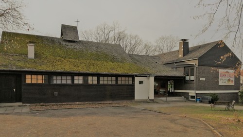 Foto: Thomas Peters, die denkmalgeschützte sog. ‚Notkirche‘ mit dem Gemeindehausanbau