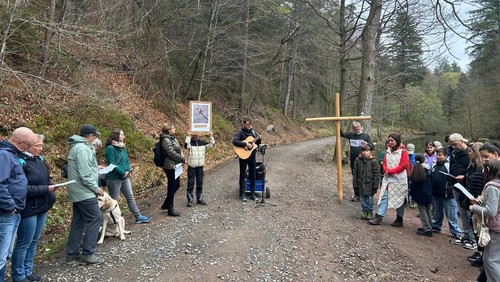 „Ich finde es spannend, dass der Kreuzweg nicht nur von früher erzählt, sondern auch viel mit unserem eigenen Leben zu tun hat“, sagt Luca Martin. Gerade Themen wie Angst oder Einsamkeit kenne eigentlich jeder. Luca ist einer von knapp 20 Jugendlichen, die in diesem Jahr den Kreuzweg der Kirchengemeinde Münchhausen hinauf auf den Christenberg mitgestaltet haben. Eingeladen sind aber natürlich Menschen aller Altersgrupen – „das ganze Dorf läuft mit“, sagt Claudia Koch von der Evangelischen Jugend des Kirchenkreises Kirchhain. Und viele Menschen, die auch von weiter her kommen.