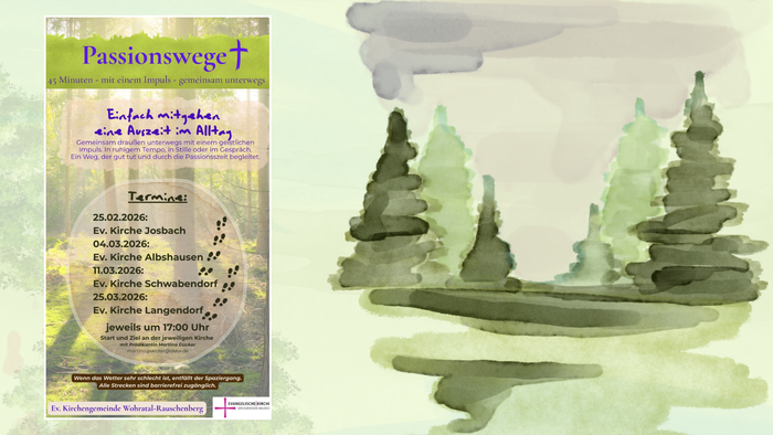 Der erste Passionsweg startet am Mittwoch, den 25. Februar an der Kirche in Josbach. Die weiteren Termine – immer an der Kirche des jeweiligen Orts und um 17 Uhr am Nachmittag – sind am 4. März in Albshausen, am 11. März in Schwabendorf und am 25. März in Langendorf. Alle Interessierten sind herzlich willkommen.